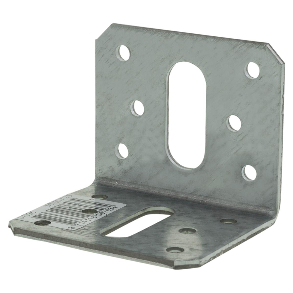The Corner Anchor Flat is a 50x50x58x2.5 mm flat corner anchor made of galvanised material.