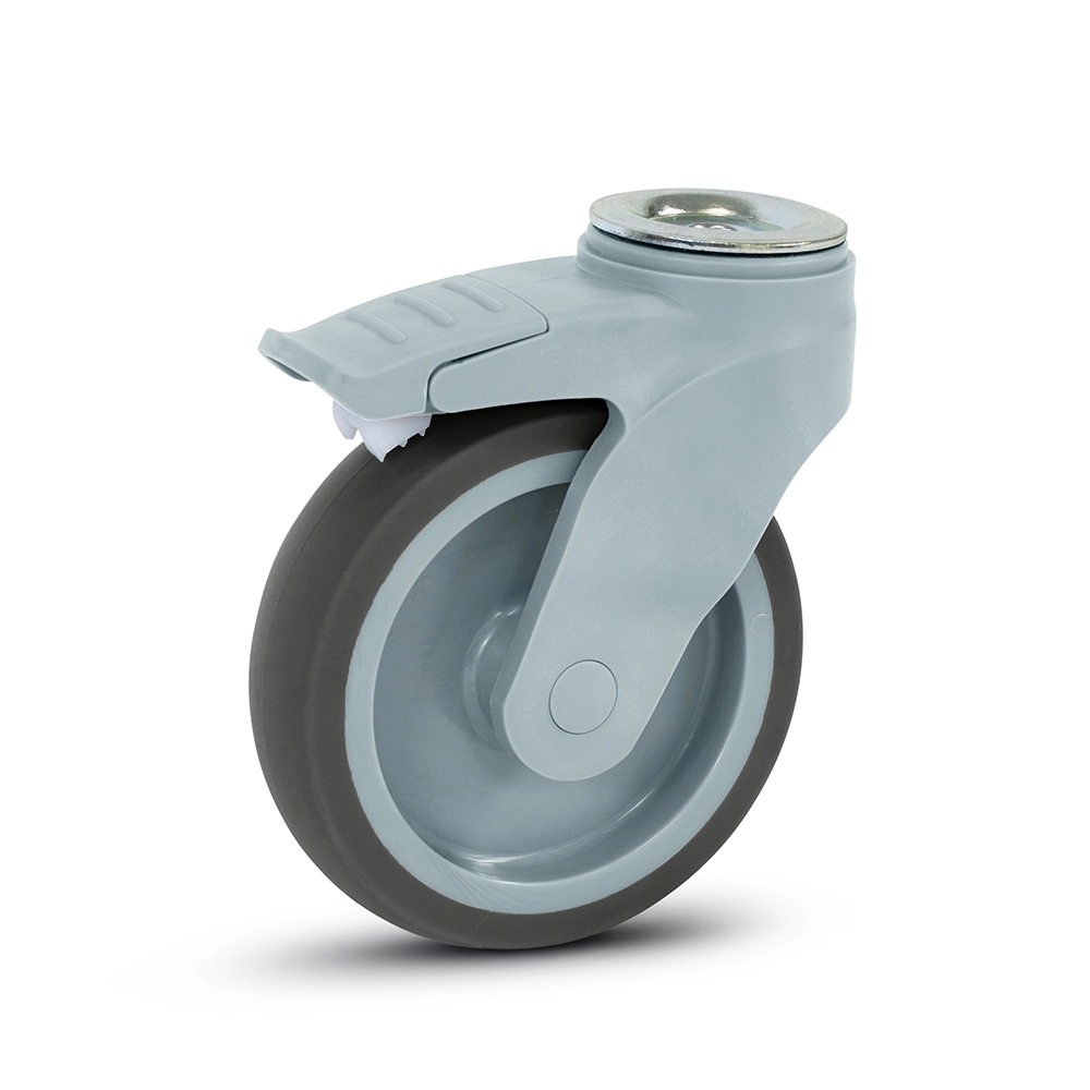 Grey plastic swivel castor braked with bolt hole - 125mm - 100kg