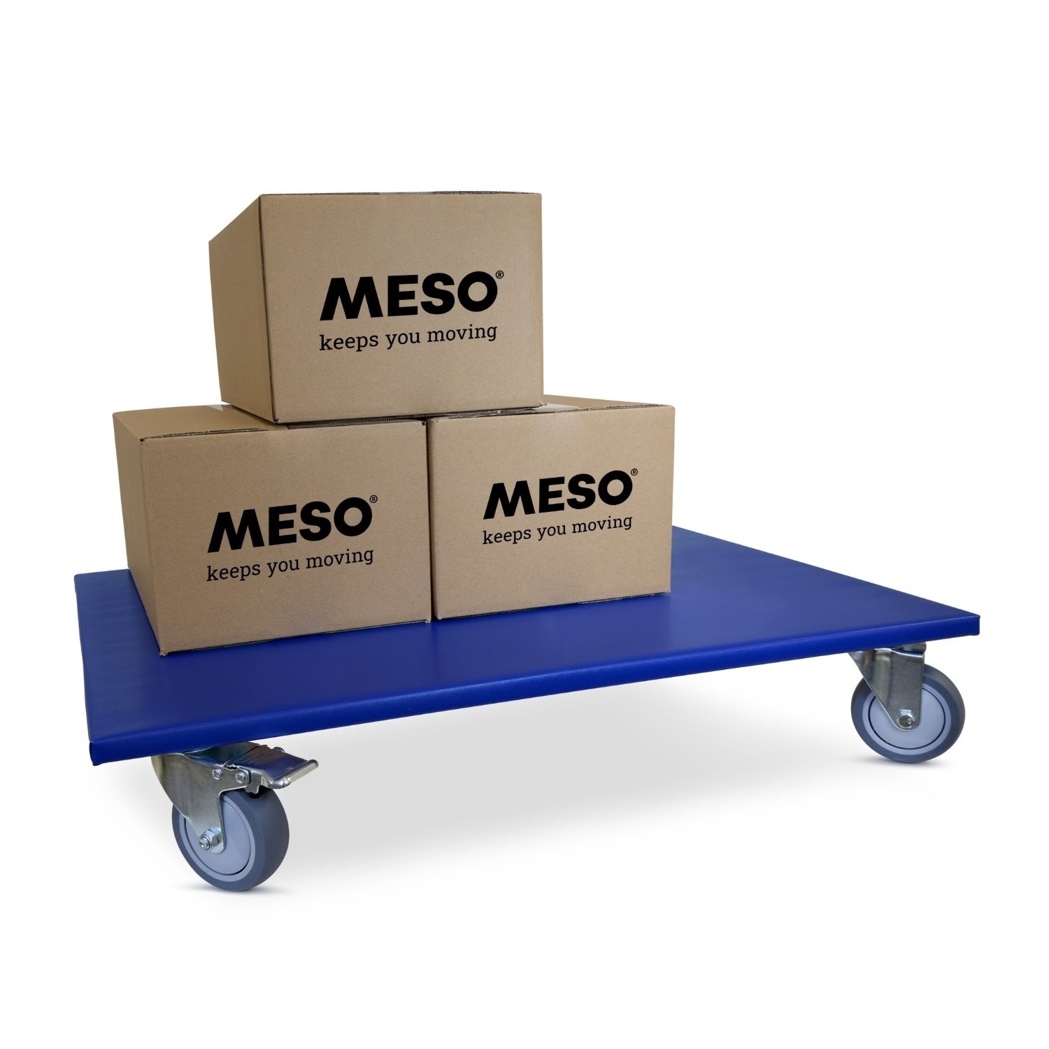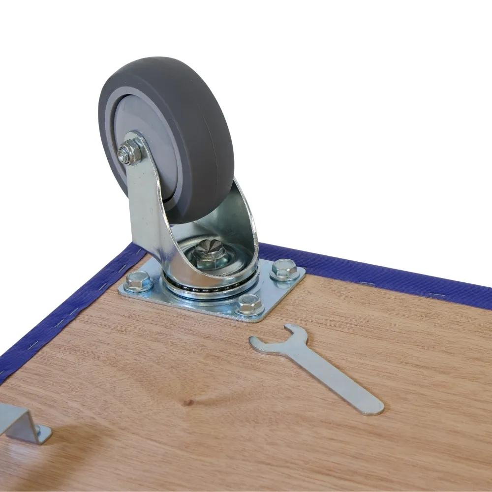 Furniture roller with quiet TPR castors, two braked swivel castors, 800mm x 400mm and a load capacity of 350kg.