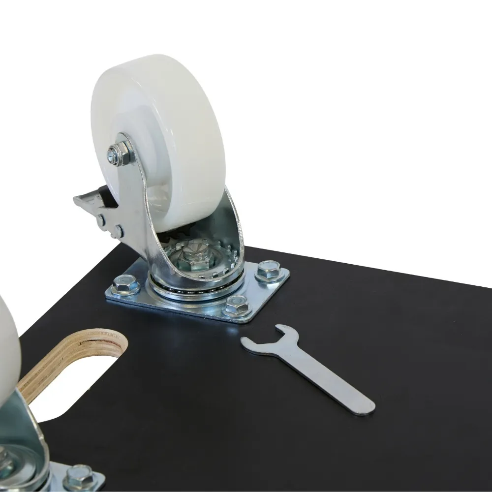 Furniture roller with wear-resistant nylon wheels, four braked swivel castors, 575mm x 350mm and a load capacity of 400kg.