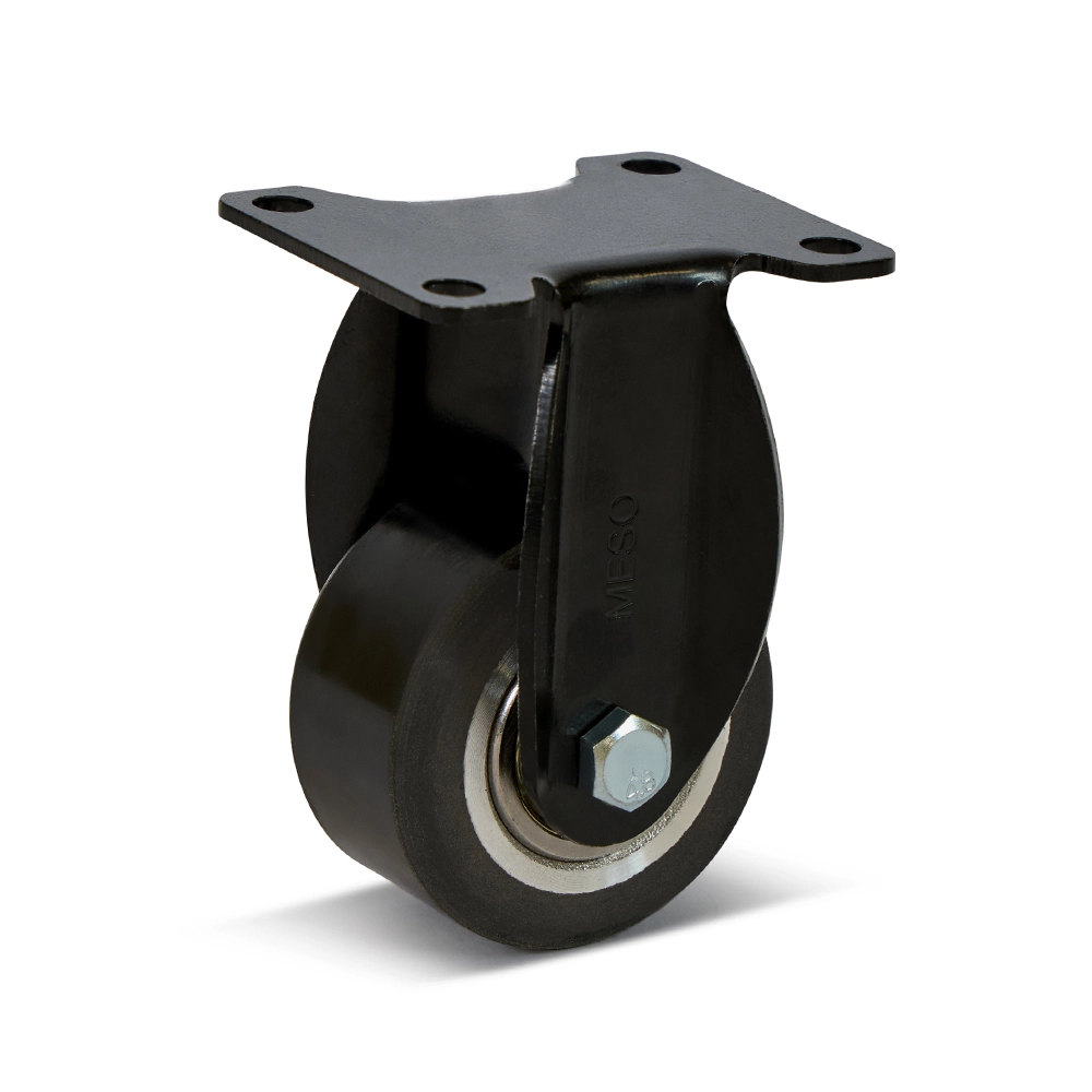 The PU bucking wheel 50mm is a fixed solution with an impressive load capacity of 120kg. The high-quality black PU tyre ensures quiet, smooth running and offers excellent protection for sensitive floors. Thanks to its stable construction, this fixed castor is ideal for applications requiring only straight-line movement, such as transport trolleys and furniture pieces.
