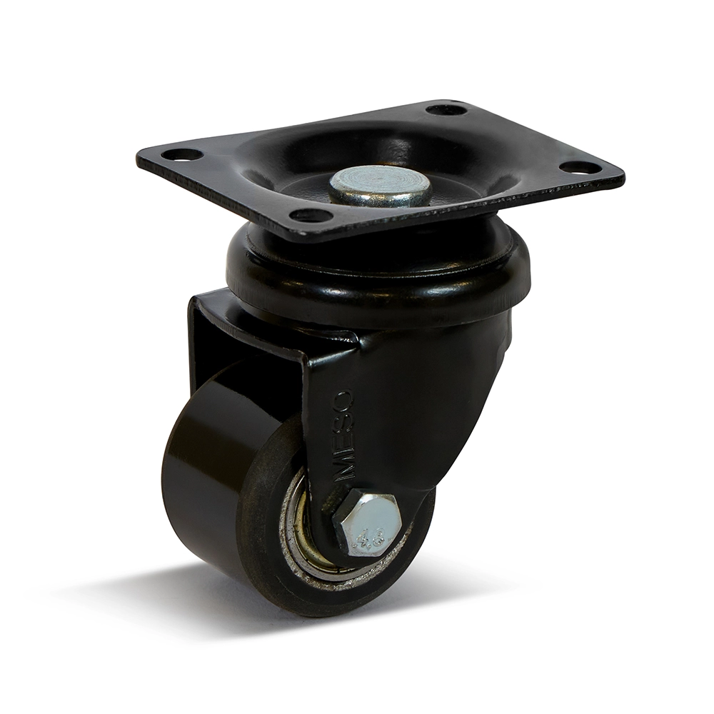 The 35mm PU caster with top plate is designed for smooth and flexible manoeuvring, even in confined spaces. With a load capacity of 100kg, this caster offers reliable support in a compact size. The black PU tyre rolls quietly and smoothly, and the neat finish makes the wheel ideal for stylish applications such as furniture and small transport trolleys.