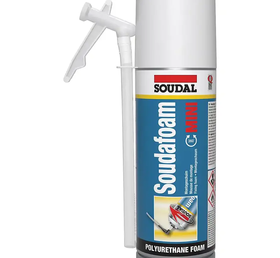 Soudal's Soudafoam Mini is a 150ml canister of polyurethane foam used for sealing, filling, and insulating in construction and DIY projects. It offers excellent adhesion to most building materials, including wood, concrete and metals. The foam hardens with moisture and expands upon application, creating a strong and durable joint. It is ideal for small jobs that require precision due to its compact size. Soudafoam Mini offers thermal and acoustic insulation, and is resistant to ageing, weather and moisture. Be careful as it can cause skin and eye irritation. Store in a cool, dry place away from sunlight.